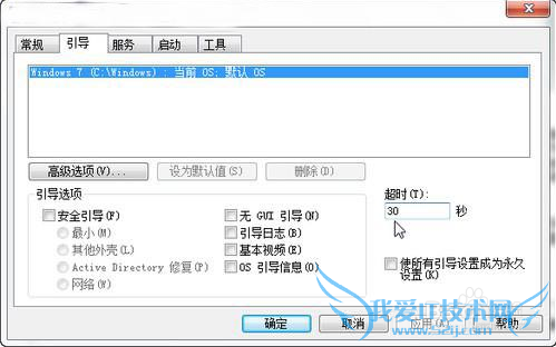 ▲弹出的系统配置 这里我们要说的是如何通过msconfig设置,让系统启动更快 在“系统配置”窗口中切换到“引导”选项卡,ghost xp sp3系统 dcmas.cn,就会看到一个“超时”设置框,这里默认的时间是30秒,我们修改为“3”(这里的数字随意修改)。
