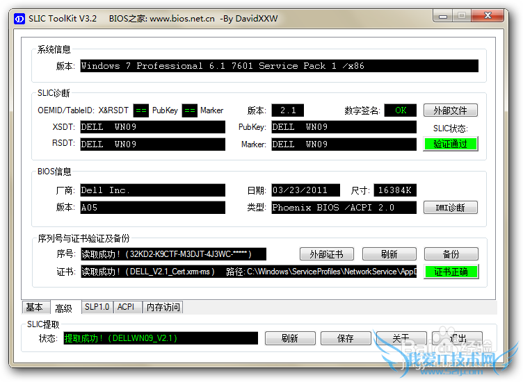 经过纯DOS下运行AFUDOS V2.36给主板刷入添加了SLIC的BIOS文件