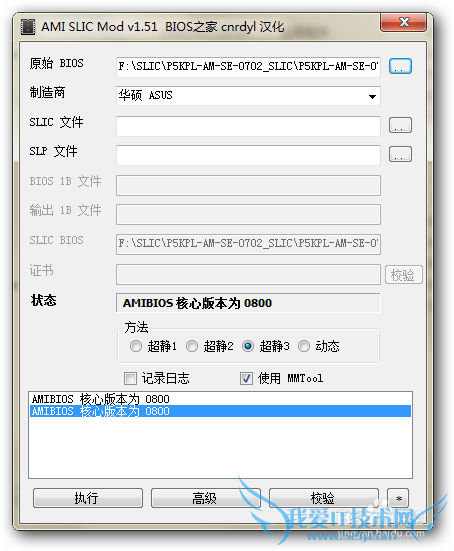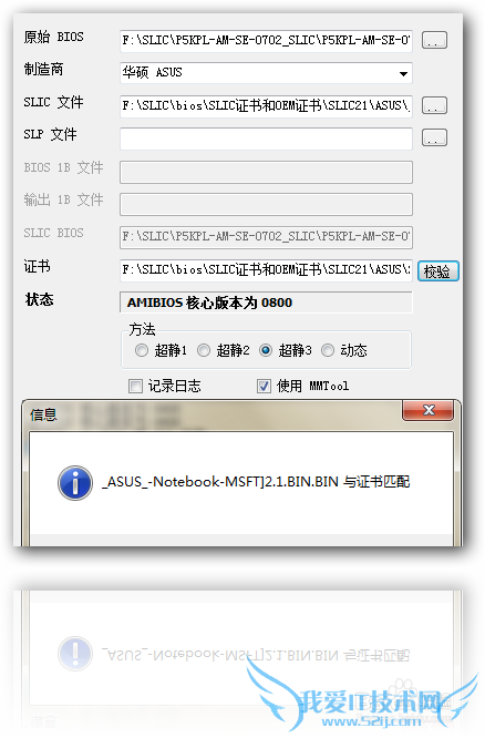 在图1,不选择原始BIOS文件而选择添加了SLIC的BIOS文件试试什么结果