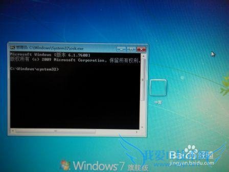 然后再进入到Sytem32文件夹下,将“osk.exe”剪切出来做一个备份。最后,将改名的cmd.exe,也就是osk.exe复制进去。这样,就ok了。关闭电脑重启吧!