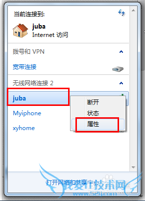 2.选择当前使用的无线网络,点击鼠标右键,弹出该无线选项框
