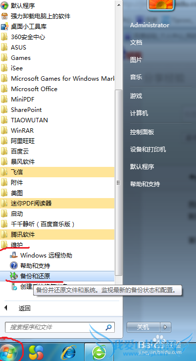 首先 单击“开始”菜单 - 选择“维护” - 选择“备份和还原”