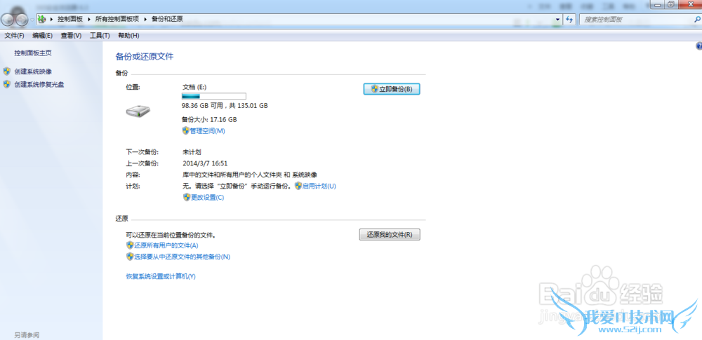当系统出现故障时,你就可以恢复您之前备份的系统