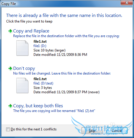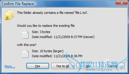 另外安装了Classical Shell后,文件替换对话框和文件传输对话框也都会变成XP那样(下图5)!当你在Win7资源管理器中复制或移动文件时,一旦存在同名文件,就会显示以下文件替换对话