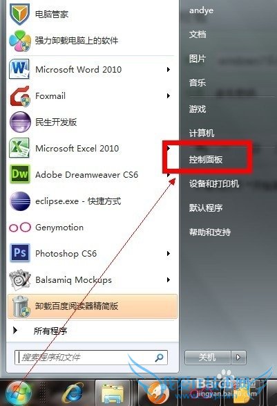 1.首先打开“开始”菜单---选择里面的“控制面板”