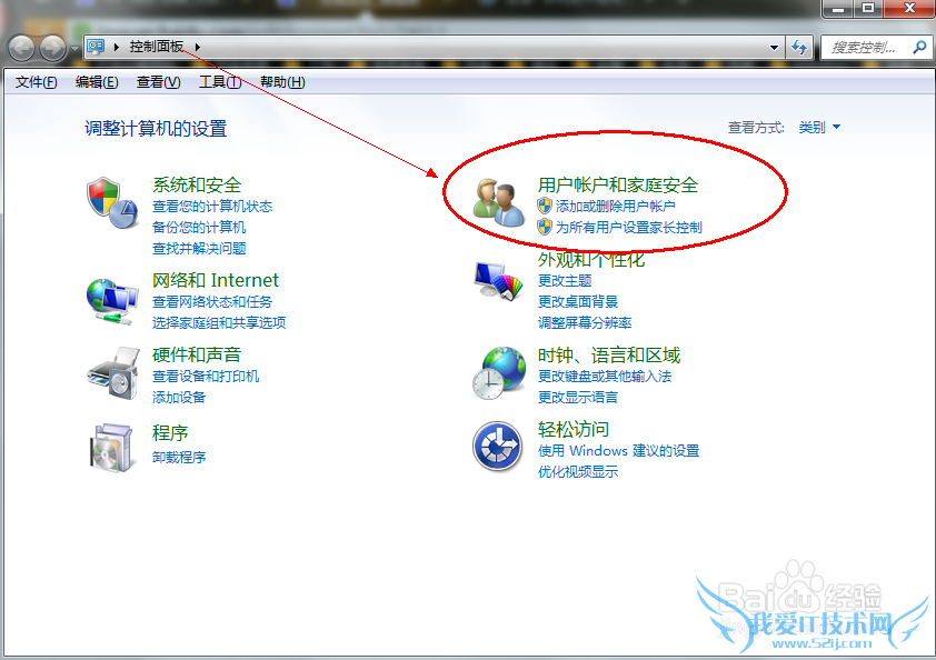 2、打开“用户帐户和家庭安全”