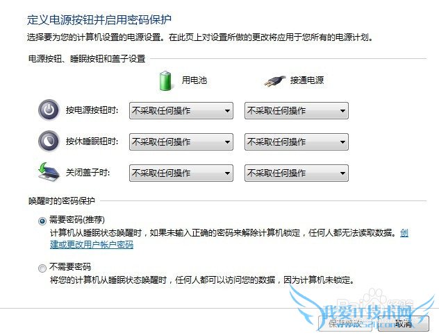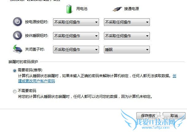 例如:我在“关闭盖子时”即合上笔记本,在接通电源的情况下设置“睡眠”。那么重新启动的时候就要输入设定的用户密码了。