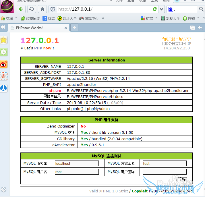 如果显示上图,恭喜你成功安装了PHPnow软件包~