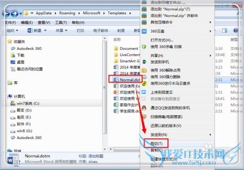 粘贴之后,点击“回车键(enter)”,进入该地址下的文件夹目录进行相关操作。这时看到一个文件名称为“Normal.dotm”的文件,将这个文件剪切出来,放到其他磁盘中保存(这样做的目的是如果问题解决,这个文件可以删除,如果出现新的问题,在按照上面的地址拷贝回去)。正常情况下,这样就解决了问题。