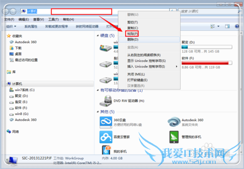 然后在出现的计算机界面中,在计算机“地址”栏目,点击一下鼠标左键,然后再点击鼠标右键,把这个地址“C:\Users\Administrator\AppData\Roaming\Microsoft\Templates”粘贴到里面。