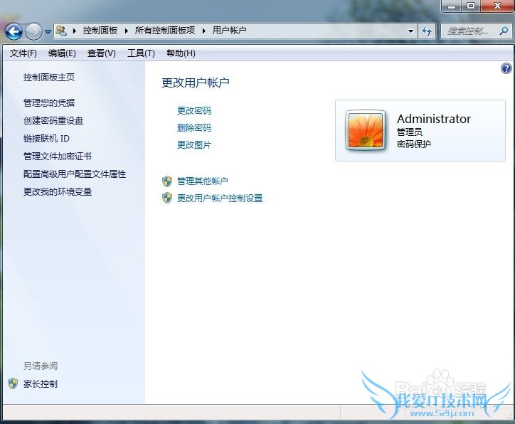 五、创建后将看到“更改用户帐户”项内容已经变为“更改密码”和“删除密码”了。这说明 你的密码已经设置成功。