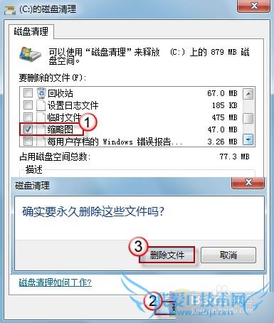 3.现在您需要做的,仅仅是在“要删除的文件”一栏中,勾选“缩略图”项。然后,确认删除。