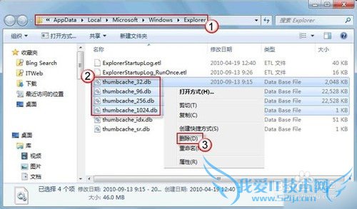 2.根据图标大小的不同,文件夹中分别存有下列四个.db 文件,请将它们全部删除即可。