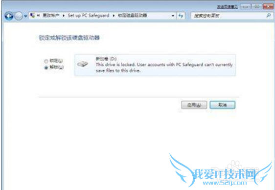 图5、“锁定或解除该硬盘驱动器”界面 6、系统可自行解决问题 Windows 7中集成了一个“解决疑难问题解答包”组件,它可为用户随时了解系统中出现的问题,并能及时解决系统中出现的这些问题,并以“向导的方式”找出系统中问题的原因并能提供解决方案。 操作:依次打开“控制面板”→“系统和安全”→“查找并解决问题”,在打开的“疑难解答”对话框中单击“Apply this fix”,这时有多种解决问题的方案,可以根据需要选择修复方法,并按照提示操作即可。7、超强的“库”功能 在Windows7系统中引入了一个“库”功能,和以前的操作系统的资源管理器相比有很大的不同,它能将分布在硬盘上不同位置的同类型文件进行索引,将这些文件信息保存到“库”中,就像为一些文件夹在库中创建了快捷方式,这样就能在不改动文件存放位置的情况下集中管理,提高工作效率。Windows7系统的“库”中默认的有音乐、视频、文档、图片4个库,用户可以根据需要创建其他库。在“库”中右键单击“新建”→“库”,创建一个新库。在“库属性”对话框,通过“选择文件夹”命令,选择好指定的文件夹即可。