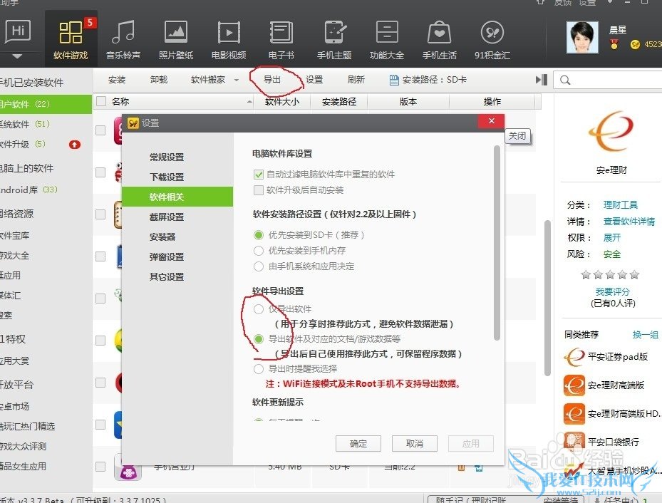 目前流行玩安卓手机,很多应用也确实非常吸引人,但是手机更新速度太快,当我们想换手机又不想丢失手机里的软件数据该怎么办呢?当然你别指望把软件移动到sd卡,再插到其他手机上,那样是不行的。当然现在市面上有很多备份软件,如钛备份之类的,但是这些软件操作起来太复杂,而且备份的是一个手机,换一个手机导入进去的话,很可能会导入失败。那怎么能实现软件及其数据在安卓手机之间来回转移但是又不容易出错呢?接下来就跟大家分享下我的通用方法: