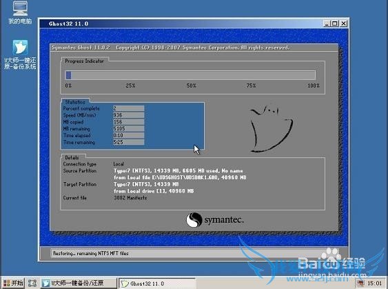3.电脑重新启动,进入界面,自动进行系统备份,备份结束后自动返回界面。如图