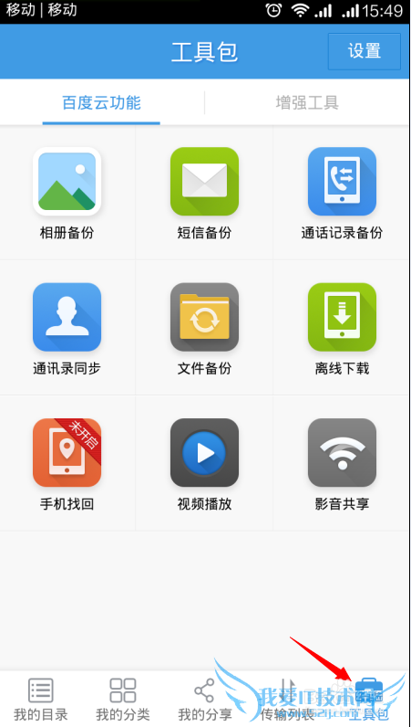 第二步:登陆百度云,点击底部导航"工具包",如图:
