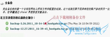 最后单击生成备份按钮进行备份,如果备份完成后我们就可以在上述设置的邮箱中收到备份完成的邮件通知,然后我们便可在备份目录列表中查看刚刚备份的压缩文件了,如下图所示,这样我们就可以成功的备份网站文件了。