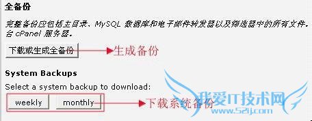 进入备份设置页面的全备份菜单中选择“下载或生成全备份”按钮进行完整备份,当然我们也可以下载系统备份,如下图所示: