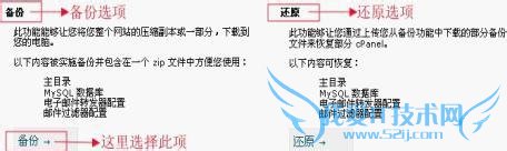 如果对以上我说的方法一不是很熟悉的话,我们也可以通过备份向导功能对网站进行备份,此功能能够让你将整个网站的压缩副本或一部分下载到你的电脑,具体设置如下。