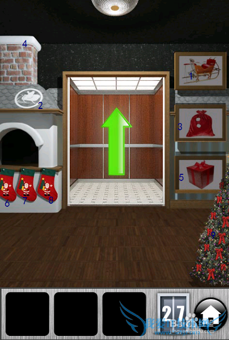 首先按下雪橇右上角的按钮,然后按下左边烟囱的白色标记,之后按下圣诞礼包的按钮,之后再次按下白色烟囱。接下来按右下角的礼物按钮,最后点击三个袜子左边的这个,再点击右边的袜子,最后点击圣诞树即可,注意,每一次按对按钮都会出现一段音乐。