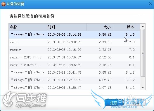 同步助手也拥有“iTunes备份功能”,可备份文字短信、联系人、备忘录,相机胶卷、应用程序的设置等信息。