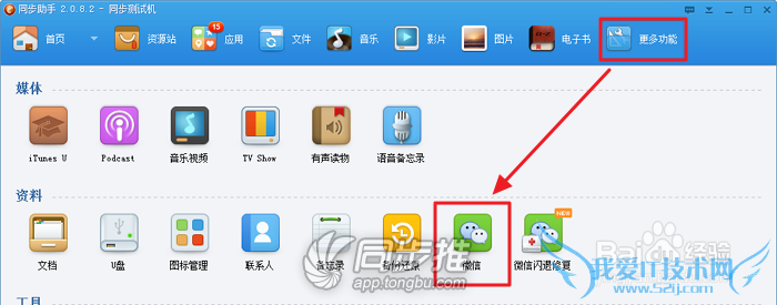 同样在“更多功能”里,点击【微信】,可备份微信聊天记录,包括文字和语音等记录。