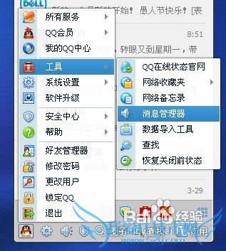 我们点QQ界面的左下角的企鹅标志,点工具-消息管理器。