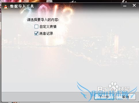 出现对话框,按默认,选“消息记录”前打上勾,点下一步。