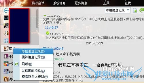如果我们要对某个好友的聊天记录进行导出备份,我们选到本地聊天记录,右击选某个好友的头像,选“导出消息记录”。