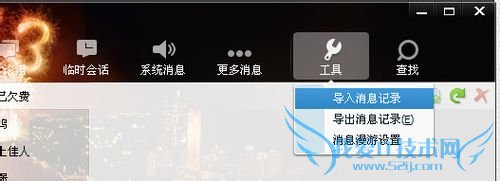 如果我们要导入聊天记录怎么办呢,我们在顶上找到工具,如图。选“导入消息记录”。
