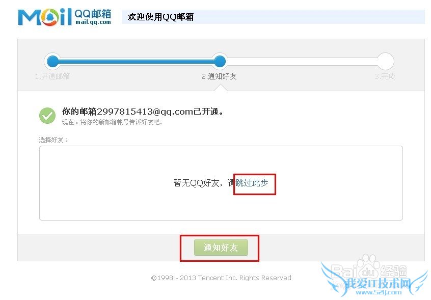 进入“2.通知好友”页面,可以点击“通知好友”也可以点击“跳过此步”,如下图: