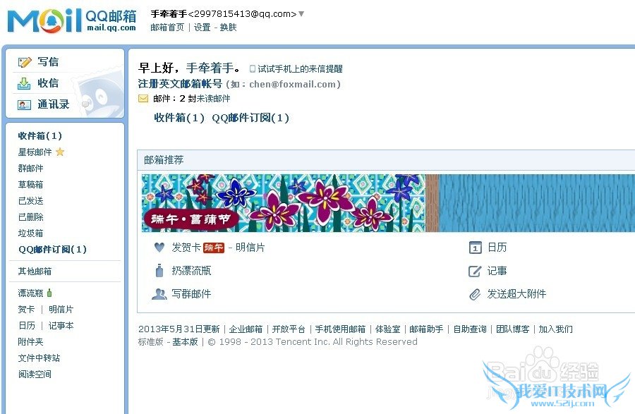 进入邮箱后,就可以正常使用QQ邮箱的各种功能了,如下图: