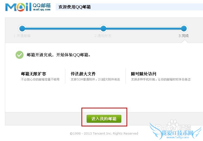 进入“3.完成”页面,这时候就可以正常使用邮箱了,点击“进入我的邮箱”,如下图: