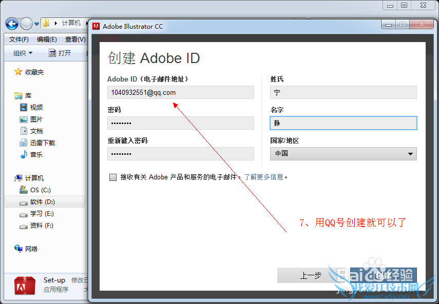 7.用电子邮箱创建AdobeID,就可以进行下一步操作
