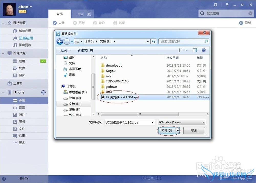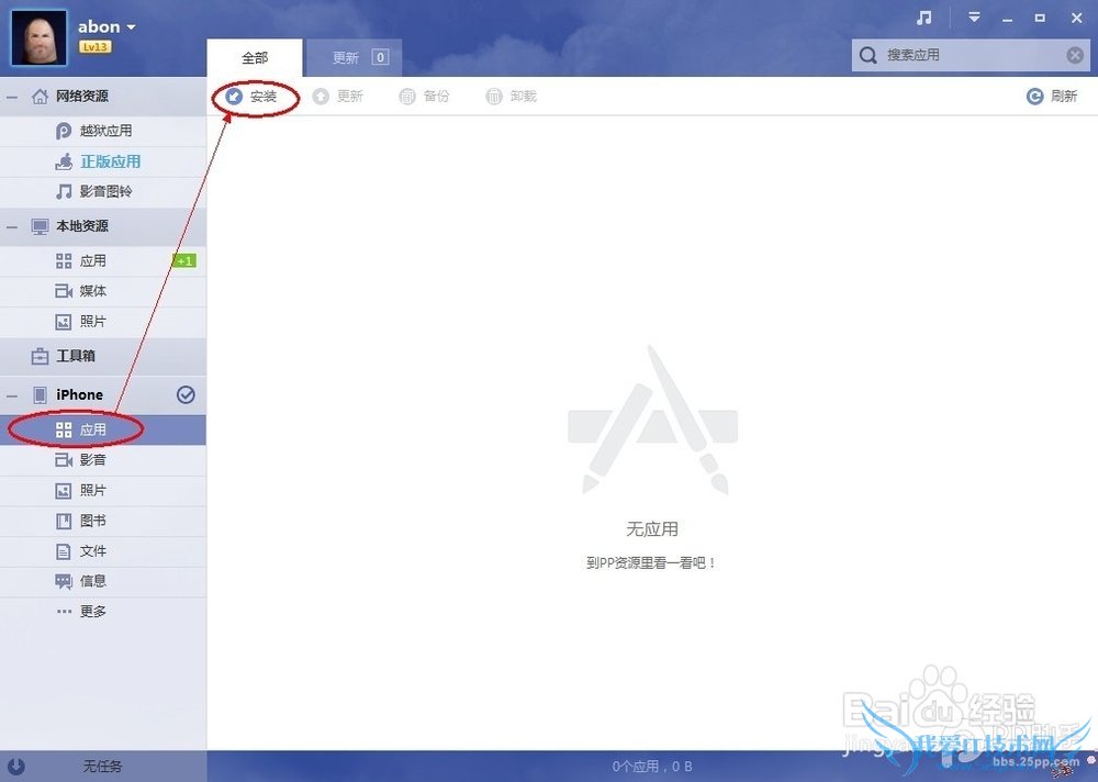 PP助手--程序--安装--选择备份的应用程序文件夹--选择还原的应用程序--安装应用程序