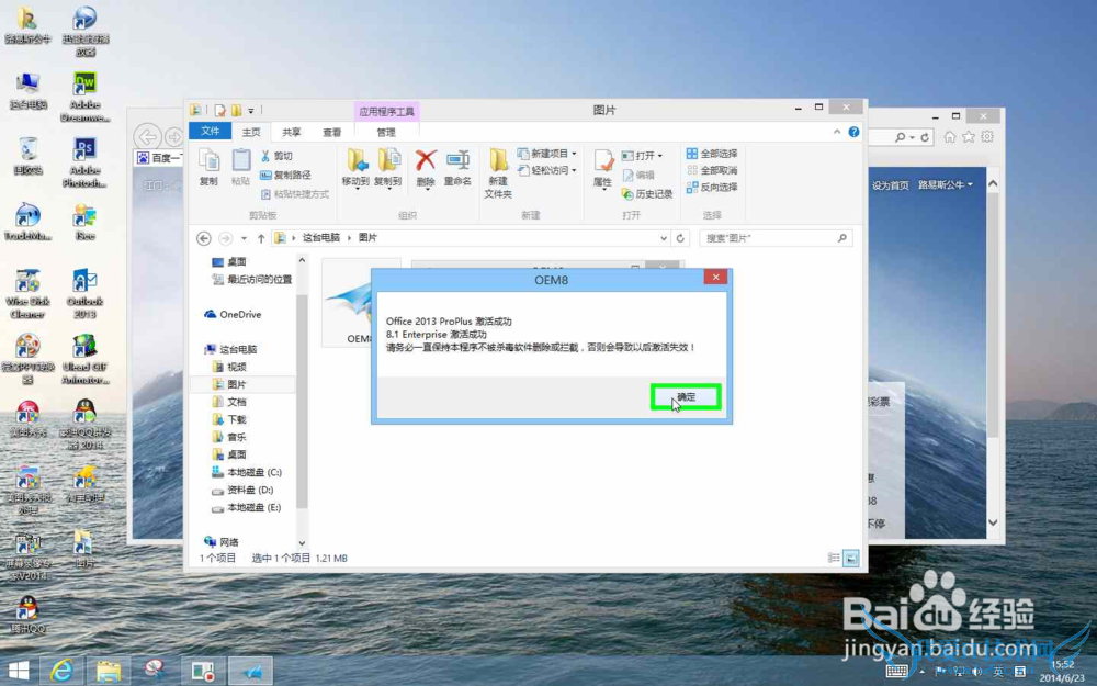 步骤 4: (在"一键永久激活Windows和Office(按钮)"上左键单击(在"OEM8"中)