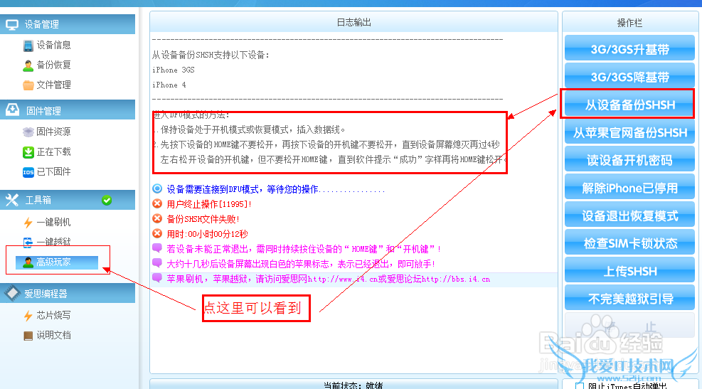 1,降级必须有6.13shsh备份如何备份请看操作,打开爱思助手工具点击高级管理