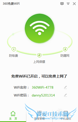 安装之后打开就可以清楚的看到它已经创建好了一个wifi热点。wifi名称和wifi密码是随机起的,你可以按照自己的喜欢来修改。