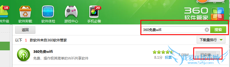 获取方法,打开360软件管家。在搜索栏中输入“360免费wifi”就可以直接搜索得到。接着直接下载安装就好了。