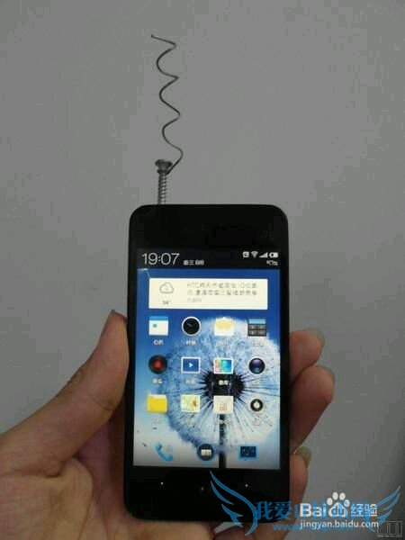 第二步,在手机的耳机插孔中旋上螺丝。