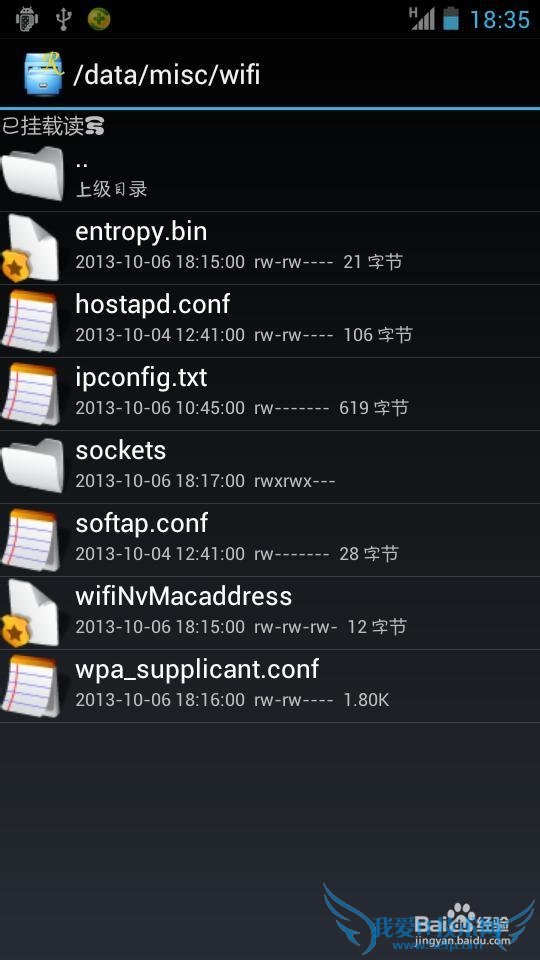 你的手机里肯定保存有WIFI密码吧,家里的wifi只要到了范围一连就ok。但有时忘记了密码,或者。。。。在这里必须的条件是你的手机已经ROOT了,来看图.前提是你的手机必须ROOT 否则无法访问系统文件,当然你要小心不要删除或擅自更改系统文件.