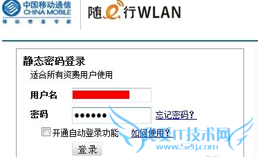 在移动CMCC随e行WLAN网址中的静态密码登录中输入您的用户名和密码,用户名为手机号,秘密是您的WLAN密码,也就是步骤2中开通WLAN时设置的密码,点击登录。