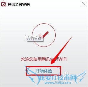 2.安装成功后,界面会提示你“欢迎您使用腾讯全民WiFi”,我们只需要点击下方的开始体验就可以使用它了。