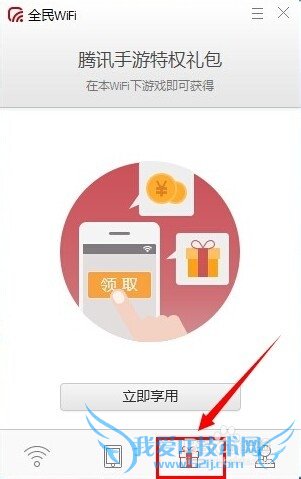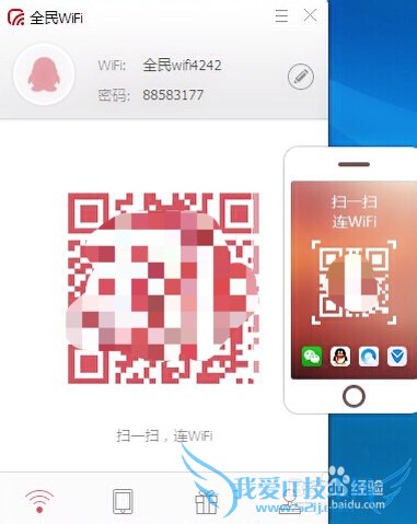 3.然后我们就进入到了全民WiFi的主界面,在这里有一个显眼的红色二维码,我们拿出手机使用微信、QQ等腾讯工具进行扫一扫即可连接。