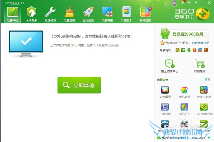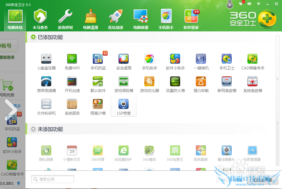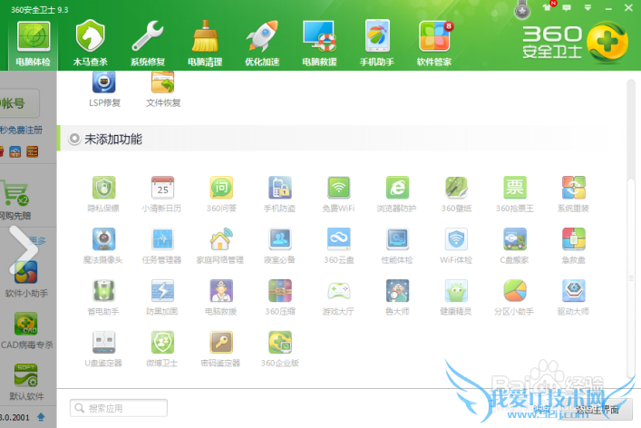 打开360安全卫士,在右侧功能大全处单击【更多】,弹出更多的360功能。