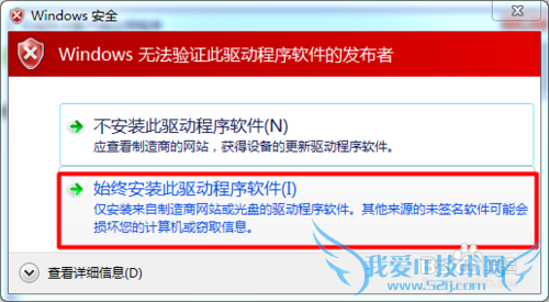 当Windows弹出“无法验证的驱动程序”窗口时,点击“始终安装驱动程序”项即可。接下来就等待无线网卡驱动程序的安装完成。