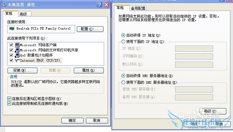 确认正确后,右击“网上邻居”--属性---本地连接--属性--INTernet协议((TCP/IP)--"自动获取IP地址"--确定