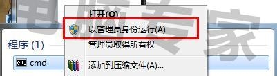 首先打开你的笔记本的无线网卡“开关”后,点击【开始】—在搜索框中输入“cmd”—以管理员身份运行。(如图1,图2)