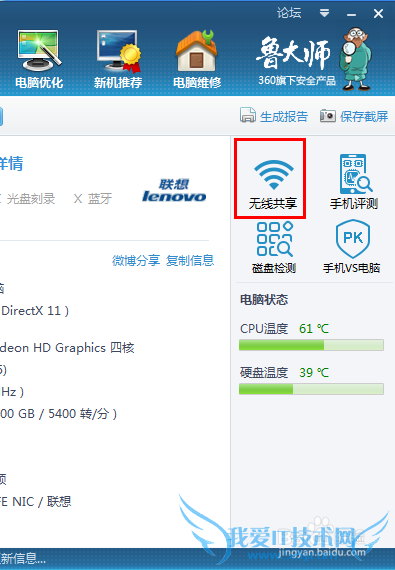 >法三:利用鲁大师无线共享创建免费WiFi热点